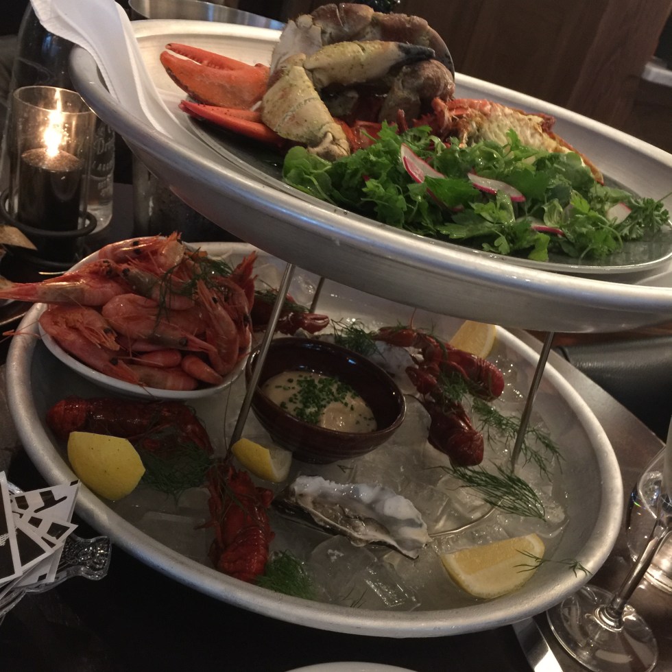 Skaldjur, pizza och specialchampagne på Bar Cg